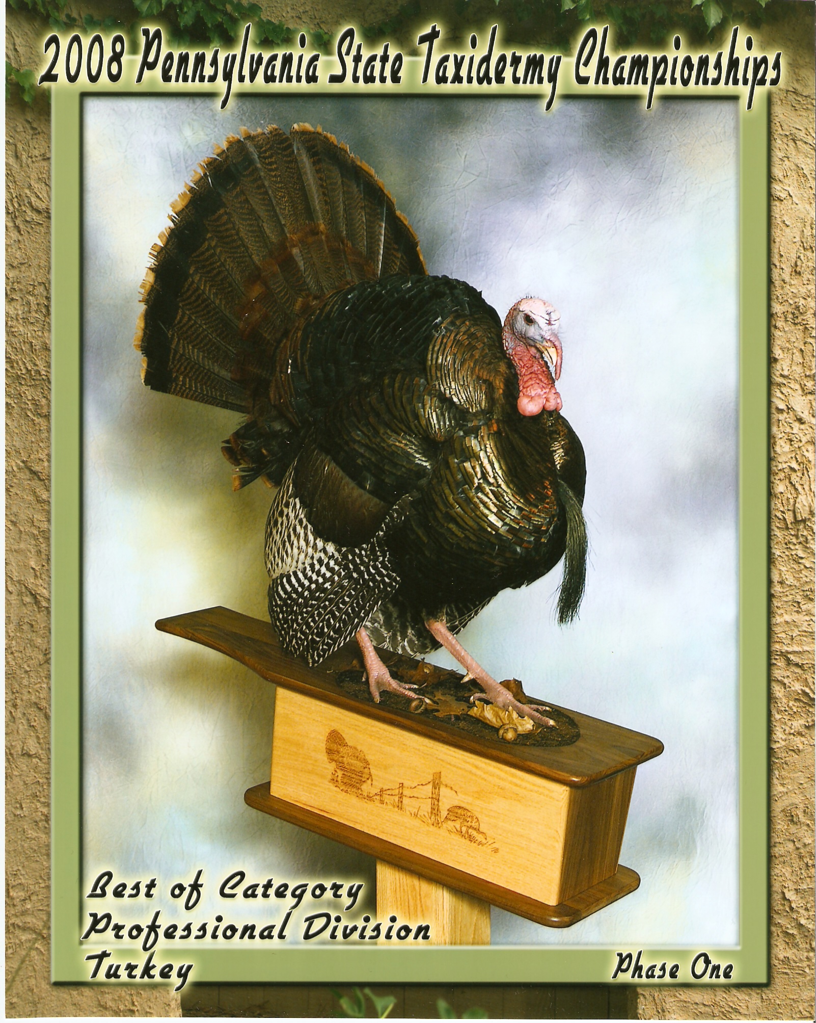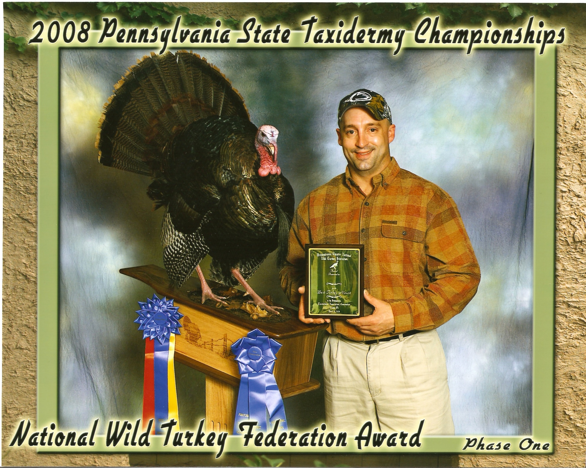 On March 15th, Jeff Crawford of Whitetail Country Taxidermy in St. Marys PA competed with this turkey mount at the Pennsylvania State Taxidermy Championships in Altoona. He won First Place and Best of Category and also won the Pennsylvania Chapter of The National Wild Turkey Federation Award for the best Turkey mount in the competition.