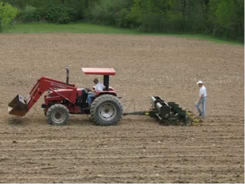 deep. I plant my corn with a four row planter that plants and fertilizes at the same time. I use the